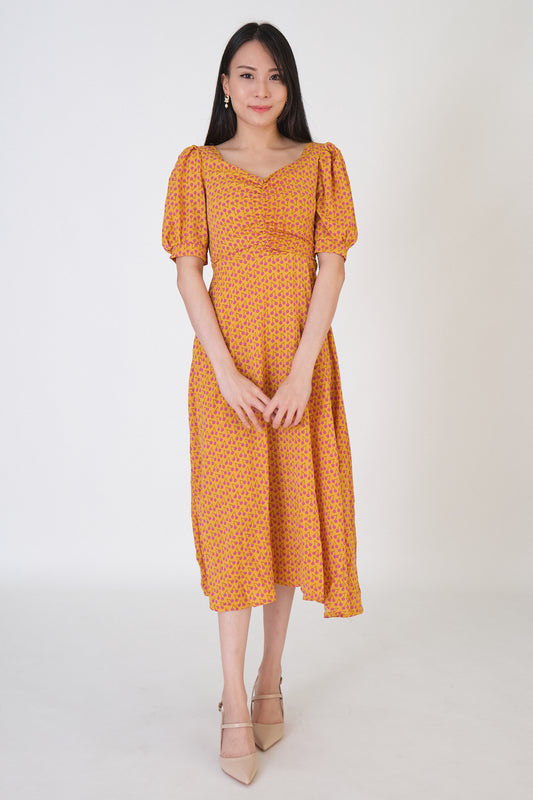 Chixxie Taylor Frill Midi Dress (Yellow)
