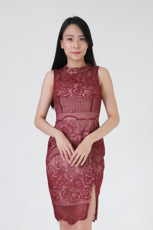 Chixxie Brynn Midi Lace Dress (Pastel Purple)