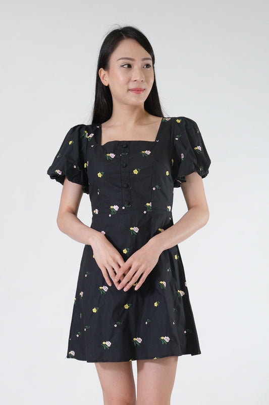 Chixxie Nana Floral Short Dress (Black)