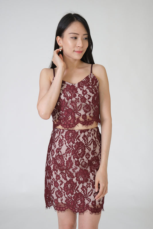 Chixxie Molly Two-Piece Lace Set (Maroon)