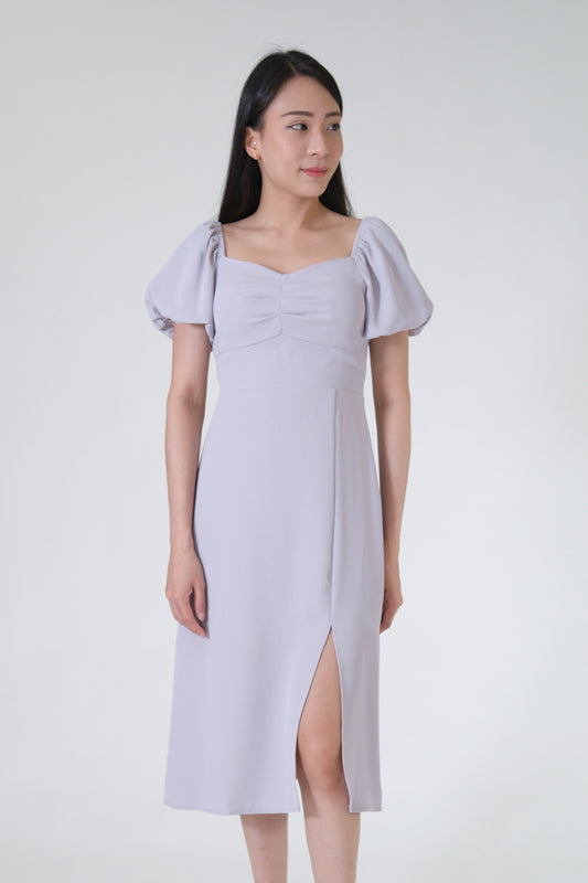 Chixxie Mavis Puffy Sleeve Slit Dress (Blue)